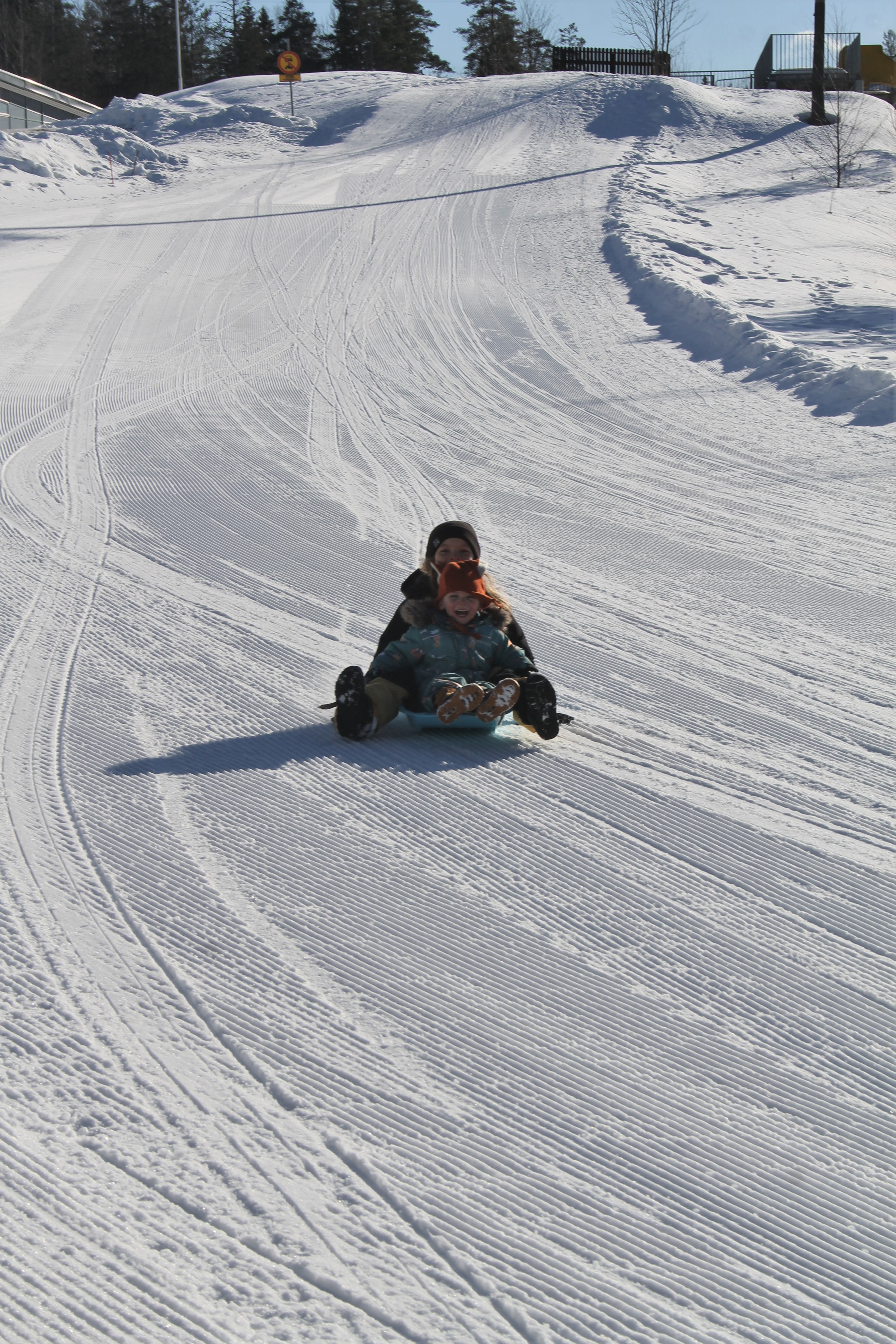 Pulkkamäki oli hieman piilossa alueen perällä, mutta muuten ei valittamista - hauskaa oli ja hyvät vauhdit sai. Mäessä ei myöskään joutunut ketään väistelemään. Vähän myös kauhistutti alastulossa olevat syvät ojat ja autotie, sillä laskut tulivat vauhdilla pitkälle. Vaatii siis hieman sitä, että osaa ohjata pulkan penkkaan.