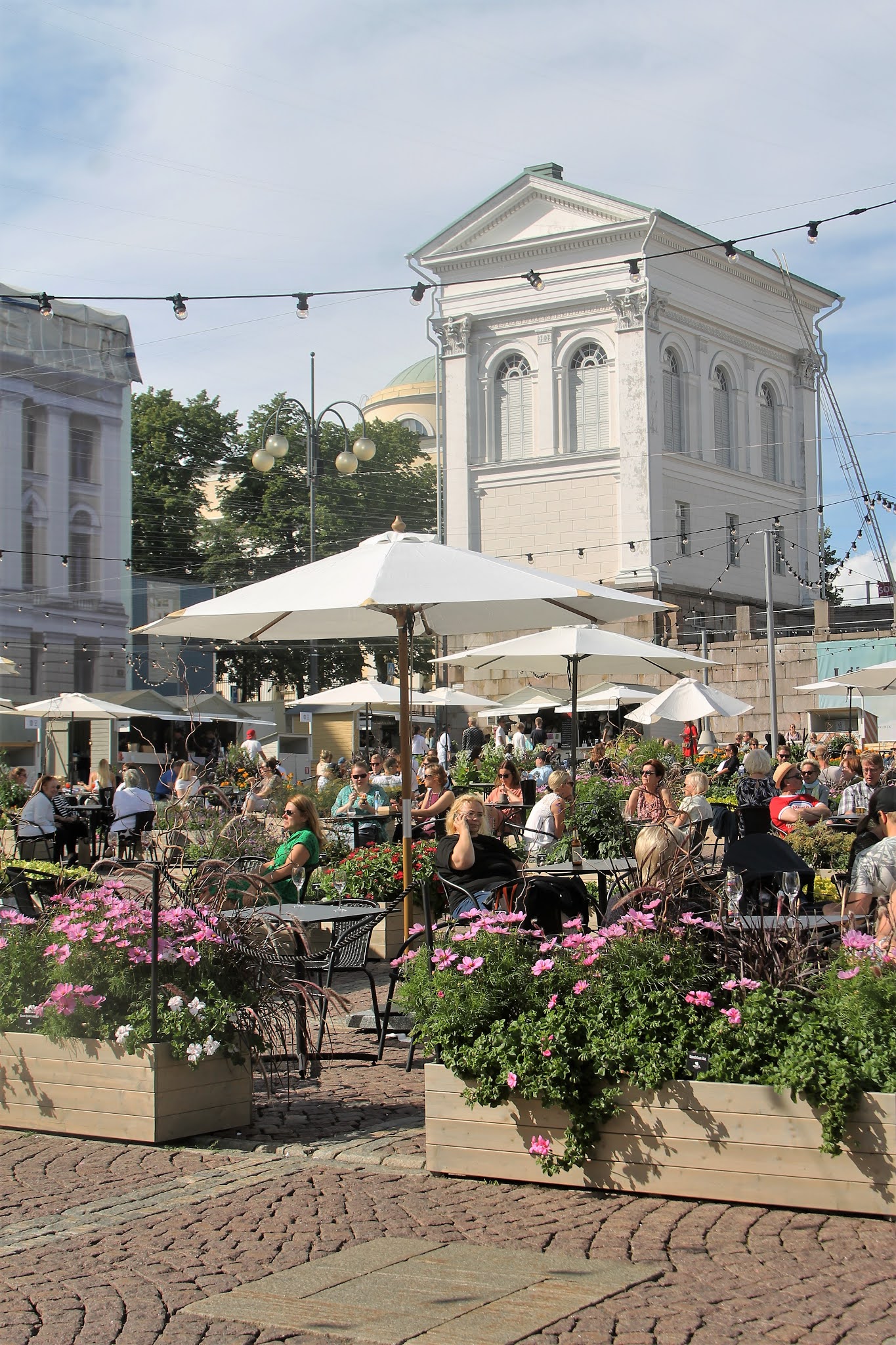Me välteltiin tänä kesänä suosituimpia kesäpaikkoja, joten emme juuri käyneet keskustassa. Loppulomalla tehtiin kuitenkin yksi saariretki Kauppatorilta, joten paluumatkalla pysähdyimme hakemaan virvoiketta Senaatintorin kesäterassilta.